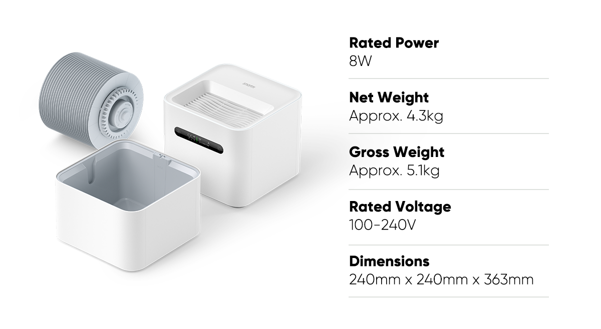 The H2 is small but mighty. With a 4L capacity tank, it provides 16 hours of humidification at the maximum setting.